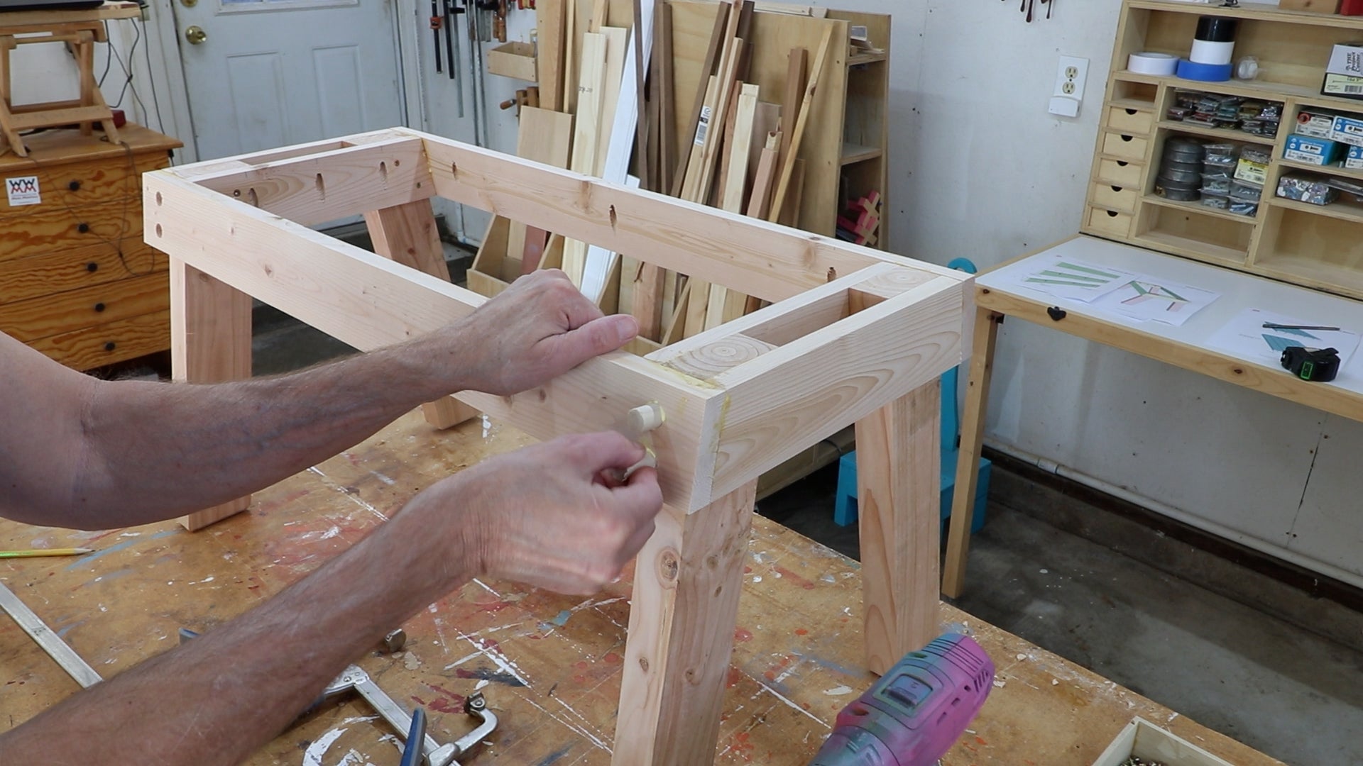 I designed this outdoor garden bench to be simple and inexpensive to build. I made it using off-the-rack 2x4 studs and 1x4 pine boards from the home center. The materials cost around $20. To join it together, I used a pocket hole jig and pocket screws.